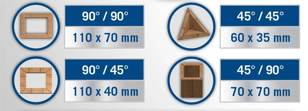 - Snijbreedte kapbedrijf 90°/45°: 110 mm