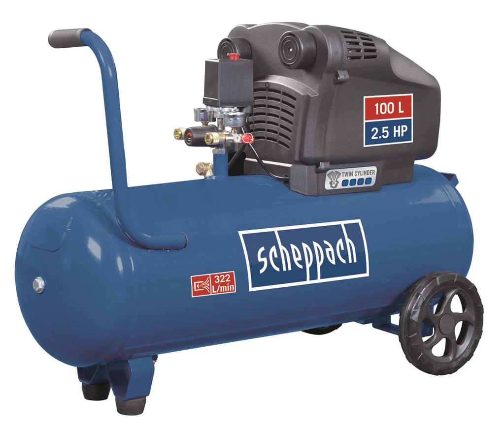 Deze Scheppach compressor heeft een ketelinhoud van 100 liter en heeft een zuigverplaatsig van 322 liter per minuut. De compressor heeft een krachtige 1500W motor, en een maximale druk van 10 bar. Voor veiligheid beschikt deze compressor over een automatische start/stop, condensafvoer, motorbeveiliging, terugslagklep, uitlaatklep en veerveiligheid.
