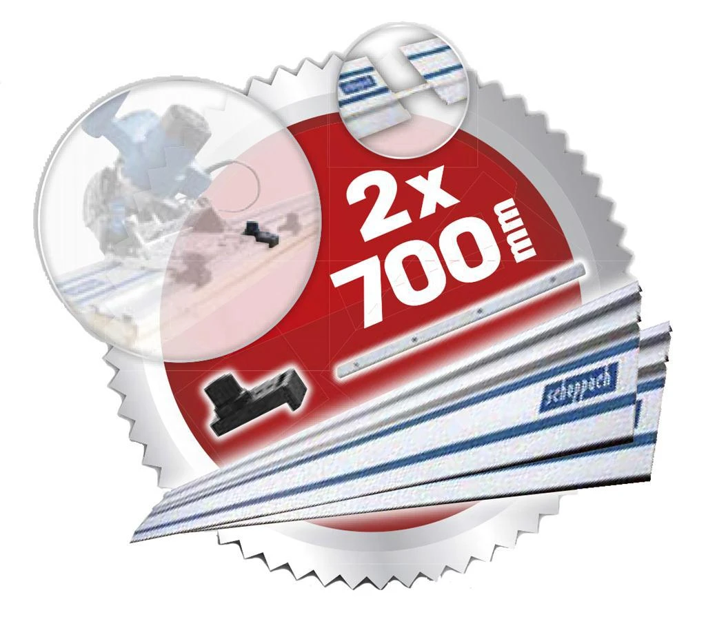 PL55 invalzaag van Scheppach, inclusief geleiderail. De combinatie van de Scheppach PL55 en de geleiderail creëert een systeem dat meer precisie genereert. Traditionele, elektrische zagen zullen nooit de resultaten halen van deze zaag.