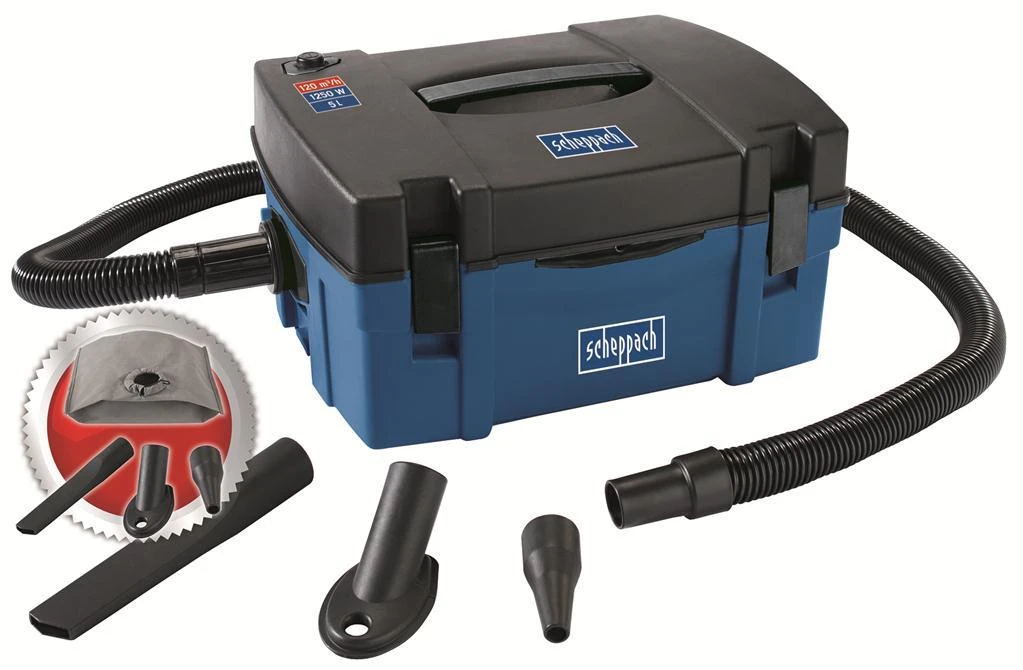 Koffer stofzuiger van Scheppach. De HD2P is een 3 in 1 draagbare stofzuiger.