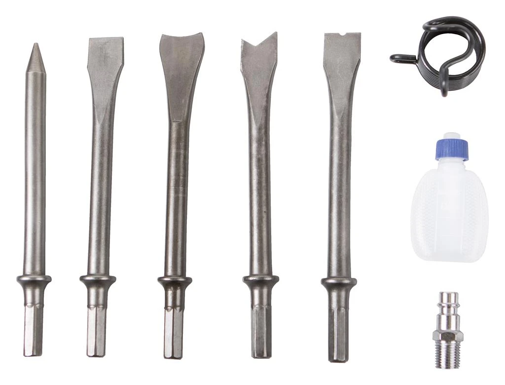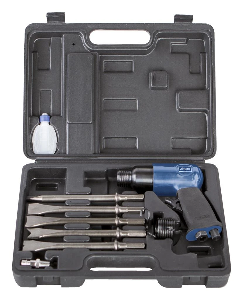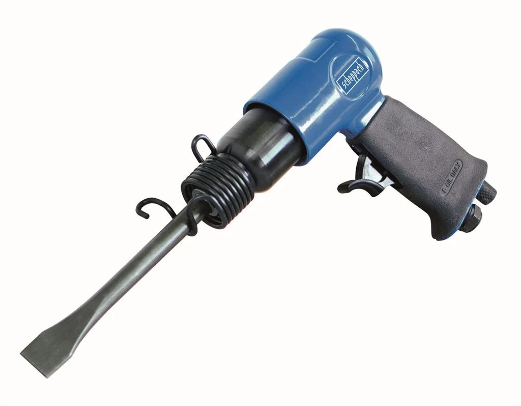 Scheppach boorhamer werkend op lucht geleverd als complete kit. Ideaal voor het snijden van metaalplaat, het verwijderen van fittingen en klein sloopwerk. Deze boorhamer geeft 4500 luchtstoten per minuut.