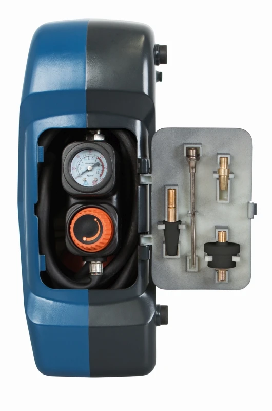 Deze compressor bevat geen olie en hoeft dus ook niet gesmeerd te worden. Deze compressor is olievrij. Het voordeel hiervan is dat de compressor dan onderhoudsvriendelijk is en olievrije lucht uitblaast. U heeft zelfs nog de mogelijkheid om accessoires op te bergen, want er is een ingebouwde opbergruimte aanwezig.