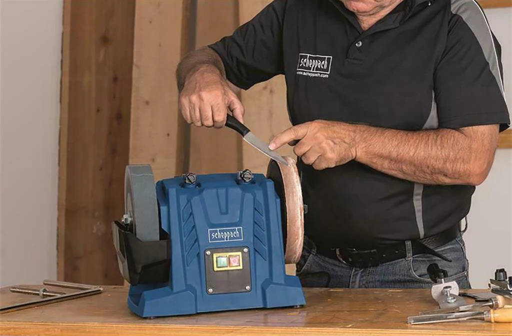 Het ideale slijpsysteem voor thuiswerkplaatsen en professioneel gebruik. Om onbedoelde fouten bij het slijpen van gereedschap te vermijden, is veel oefening en ervaring – of de TIGER 5000S Homekit van Scheppach. Met dit nat slijpsysteem is slijpen en polijsten een fluitje van een cent. De krachtige 150 W inductiemotor maakt zeer stil en aangenaam werken mogelijk, omdat hij de resulterende trillingen optimaal vermindert. Dankzij de meegeleverde hoek hoekmeter kan de juiste slijphoek in een handomdraai nauwkeurig worden ingesteld.