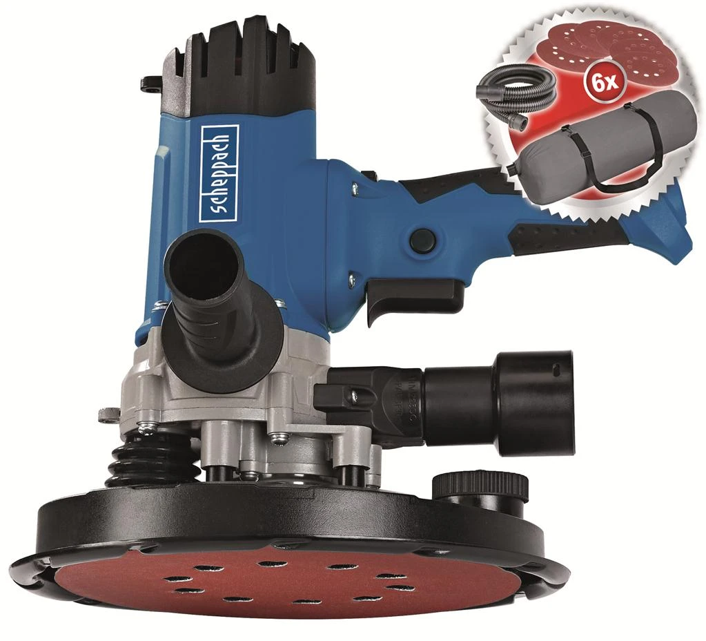 Deze Scheppach schuurmachine is te gebruiken op plafonds en wanden. Door het grote oppervlak van de schuurkop bedekt u direct een groot gebied. Deze schuurkop heeft een klitteband-systeem waardoor u gemakkelijk schuurpapier kunt vervangen. Door het ergonomisch design kunt u de machine op veel verschillende manieren vast houden.